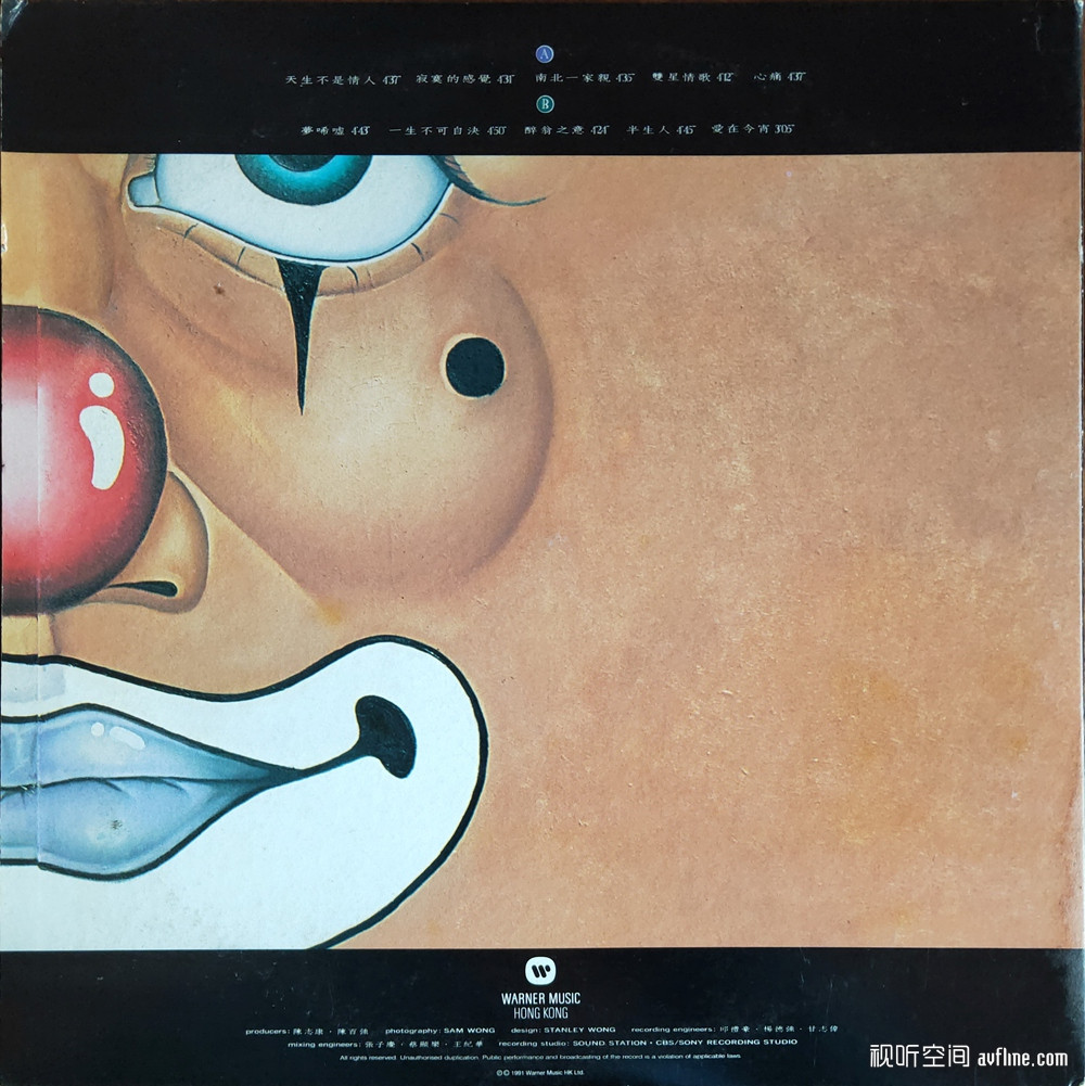 这张专辑,徐日勤作曲、林夕填词的《天生不是情人》,陈百强作曲、向雪怀填词的《寂寞的感觉》等虽然也备受社会大众青睐,《天生不是情人》也因是林夕填词而更备受关注,将其置顶放在专辑第一位,引进国内时还直接命名为这张专辑的名字。但终是口碑胜于声望,“有心栽花花不开,无心插柳柳成荫”,人民群众的眼睛是雪亮的,即使《一生不可自决》放在第二面的第二位,但金子总会发光,人们至今仍不会遗忘,甚至历久弥新,经过时光的洗礼更加推崇备至。笔者推荐这张专辑,无疑首要是因为《一生不可自决》这首歌。在黑胶唱片年代,华纳唱片公司只在这张黑胶唱片正式发行过这首歌,全球黑胶生产线于1992年已全部被CD生产线取代,此后再版或引进发行的,已非原版声音,对于追求极致音效的音响和音乐发烧友来说,原装原版才是最有价值的、最值得收藏的,这无疑是这张黑胶的显著价值之一。