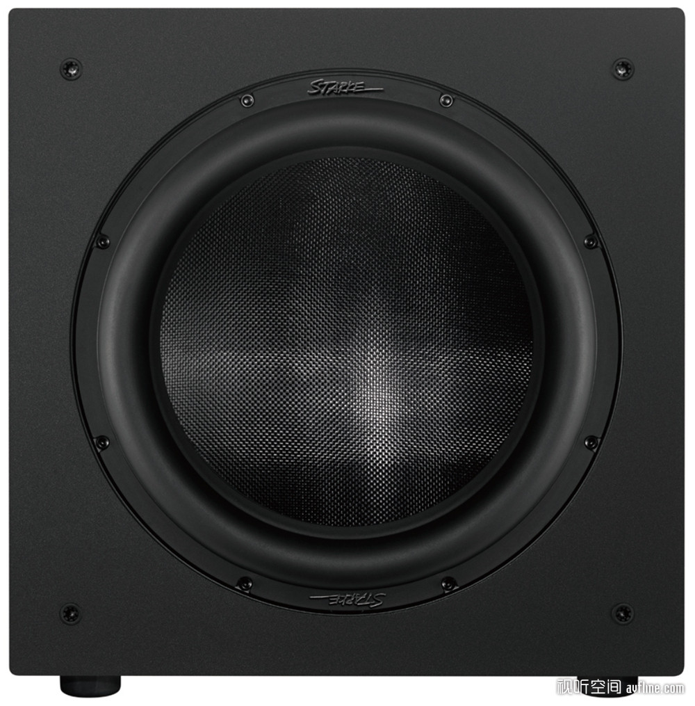 移除SW12正面的立体造型网罩就可以看到12英寸玻璃纤维三明治振膜。在之前的Halo和SUB系列上,低音单元主要采用碳纤复合振膜,但受制于成本,要在入门级别将性价比发挥到极致,Starke做了许多功夫,因此厂方为SW系列全新开发玻璃纤维三明治振膜单元,这种振膜刚性高,承受功率大,能传递清晰凝聚的低频,做到精准而可靠稳定的频响曲线。