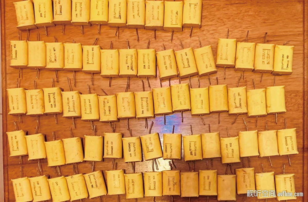 看起来容易做起来难,没有经验的菜鸟第一步拆卸电阻就遇到了麻烦,甚至都不会用吸锡器。在大树老师手把手的指导下终于学会了电烙铁和吸锡器的配合使用,成功地拔除了一个个“阵地上的堡垒”,把需要更换的电阻和电容们都一一拆卸下来。完成这步后对接下来的工程也增强了信心,对电烙铁的使用也熟练起来,有能力安装将要替换的电阻和电容。电阻和电容部分因为是严格按照原本分频器的参数进行摩改,所以需要串并联多个电阻、电容来达到提高音质和校声的目的。而这一部分的准备工作也需要非常仔细,逐一经过测量和配对,达到更好的效果!而更换机内线的过程相对方便,把原来的线材换下,根据适合的长度焊接上纱包铜线。