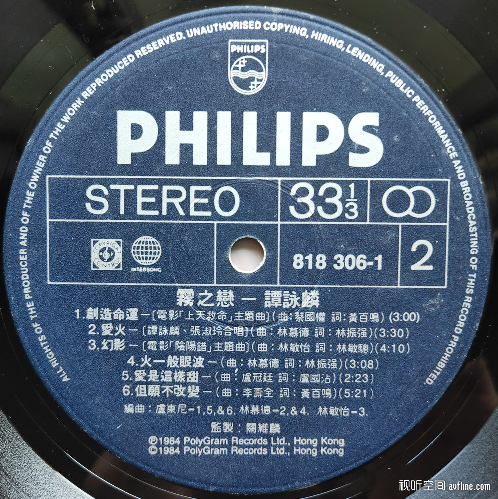 第三、声音模拟、厚润、通透。1980年前后,黑胶的模拟声音已是发展到十分成熟甚至最顶峰的阶段了,因此有发烧友说,该时段的香港流行黑胶唱片从模拟声音的角度去评价,最有收藏价值。因为到了1985年左右,数码设备开始大量替换使用了近一个世纪的模拟设备。要达到模拟、厚润、通透的音效,就需要全过程采用模拟设备。比如,母带的录音要用模拟设备,母盘的音源要用开盘机等等。这在模拟时代是标准操作,但在数码时代,模拟设备基本成了古董级器材,技术工人也难以为继。庆幸的是,《雾之恋》黑胶唱片,除了歌曲优秀之外,模拟味道也是相当出色,在现代器材的高解析力下,更加相得益彰。