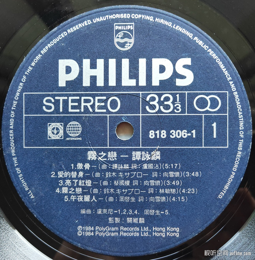 香港流行黑胶唱片的价值与版本鉴别(36) 谭咏麟《雾之恋》
