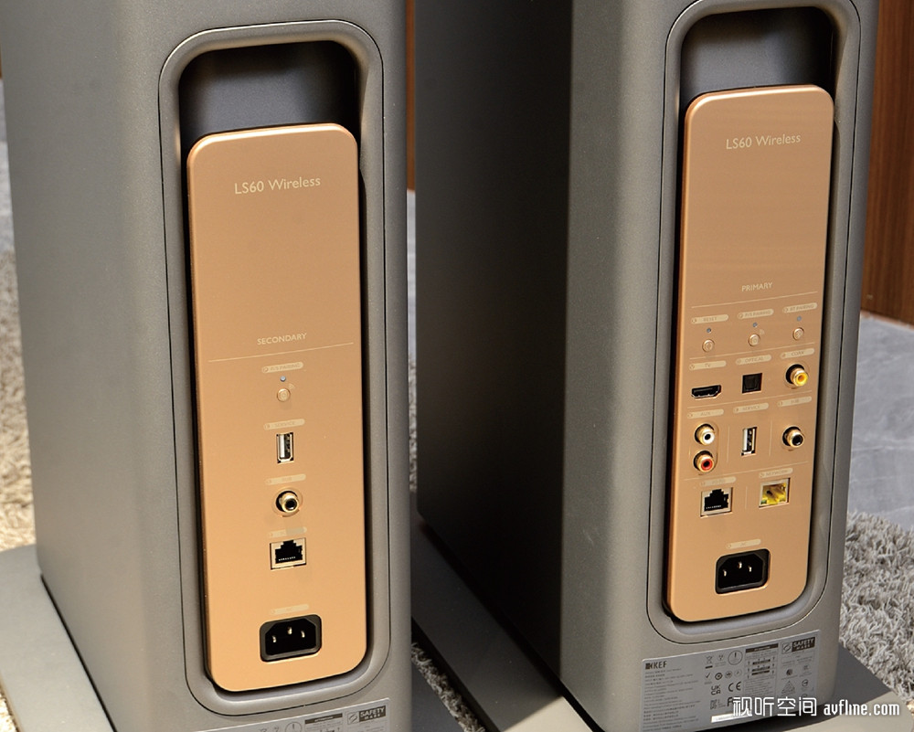 常见的有源音箱一般只提供模拟输入,因此左右两只是一样的设计和接线方式,并且需要通过前级进行音量控制才能使用。而LS60 Wireless虽然也属于有源音箱,但它加入了数播、解码等功能,因此是类似“主从”的形式设置,但其实每只箱都有独立的解码,并配备了DSP电子分频与多路功放,两者之间只是把数据从一路传到另外一路,除此之外都是独立的。