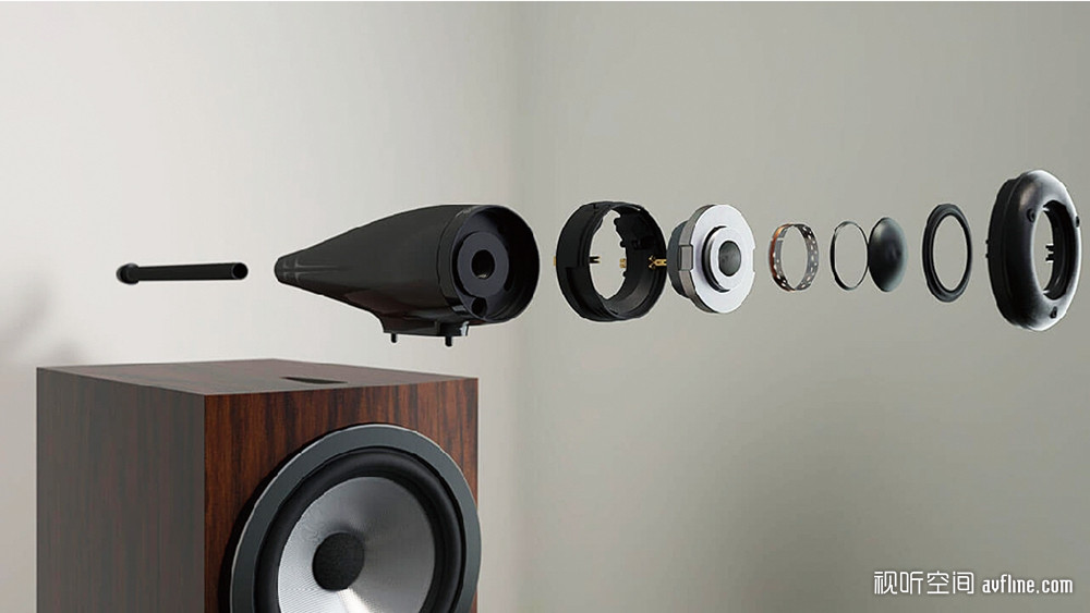 新系列的所有三路音箱,均引入了去年曾在新800钻石系列中崭露头角的宝华韦健革命性的仿生悬架技术。仿生悬架取代了近几十年来几乎所有音箱悬架都会使用的传统织物“蜘蛛盆”,从而极大地减少了由中音振盆运行时其自身所产生的噪音。配合使用宝华韦健所有其他中音振盆专利技术 ——包括整个中音组件的退耦、具有调谐质量阻尼器以减少共振的铝制驱动单元底座、FST无环绕悬挂、当然还有著名的Continuum(钢听能)振盆材料,最终成就令人惊叹的中音透明度。同时,其低音单元采用了宝华韦健新一代Aerofoil Profile低音振膜技术,该技术以一种复合夹芯结构材料为基础,将其精心加工为不规则轮廓,以实现更透彻、低失真的低音音效。