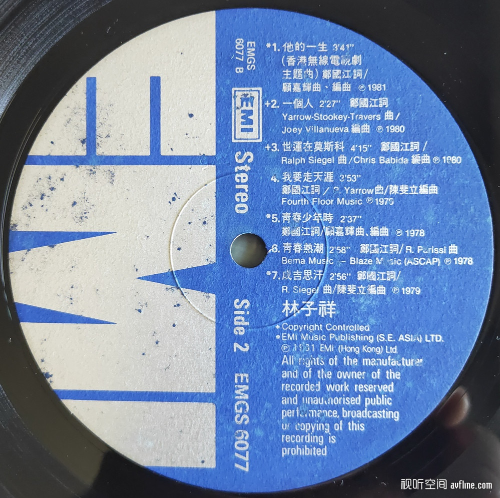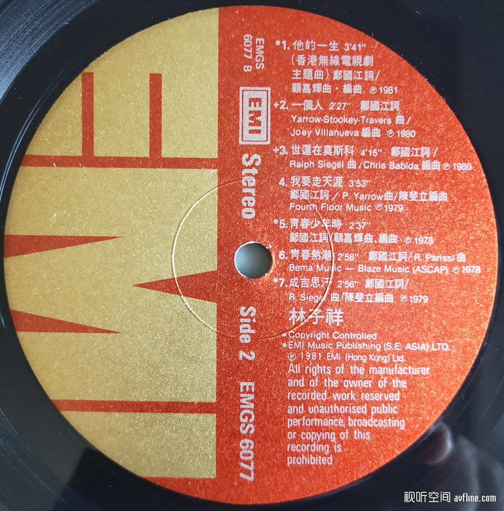 有好歌曲而无靓音质,等于广东人“有好鸡而无豉油”索然无味,又等于陕西人“吃面不吃蒜香味减一半”。谈到版本与音质,这张黑胶唱片市面上常见“黄红版”与“红心版”,少见“红金版”,罕见“蓝银版”。笔者后来才发现上述那个说“这张黑胶唱片声音很差的”发烧友,收藏的是红心版。其实,从存量的普通规律基本可以窥见音质的变化,一般常见的,音质也是“一般”,平常少见的,音质要比一般的要好,罕见版本音质通常会比较好,因为好的东西始终是少的,当然也不能绝对。从听感上说,《林子祥精选集》不同版本基本上是符合这个规律的。音质最好的是“蓝银版”,声音精准、自然、宽松、大气、厚润、通透,特别是吉它伴奏版《爱的种子》,声音更是颗粒感强烈;其次是“红金版”与“红心版”,但声音背景较“蓝银版”稍欠宁静,略微噪点,声音的线条稍显失真,有点不甚精准的感觉;再次是“黄红版”,声音密度明显不及上述几版,背景也略显浮躁。与其像某君说的“这张黑胶唱片声音很差的”,正确地说应该是“这张黑胶唱片的黄红版是不够靓声的”,相反,更准确地说应该是“这张黑胶唱片的蓝银版是很靓声的”才对。综上所述,笔者试问诸君,照这样分析,这张黑胶唱片究竟价值几何?