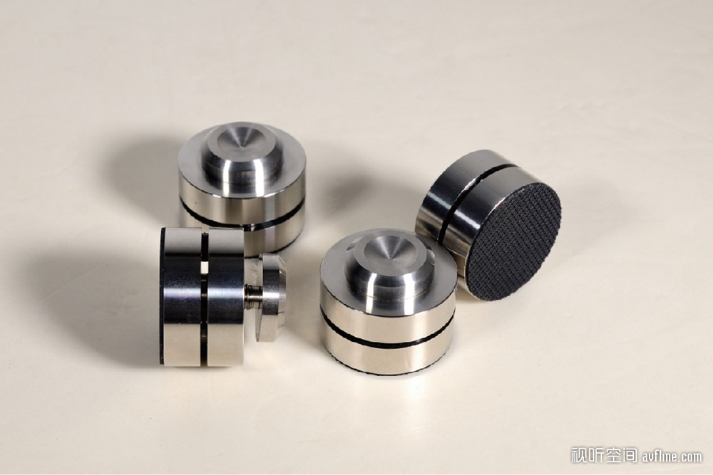 这是金枪鱼最近推出的产品,主体由不锈钢制成,底部采用胶垫,配合中部三个陶瓷珠(或不锈钢珠)来实现减震的功能。与AT-01和AT-02相比,AT-03是高性价比的产品,售价也相对亲民。AT-03同样适用于音源、解码器、放大器、黑胶唱机和书架音箱等器材,同时可以根据需要来微调高度。