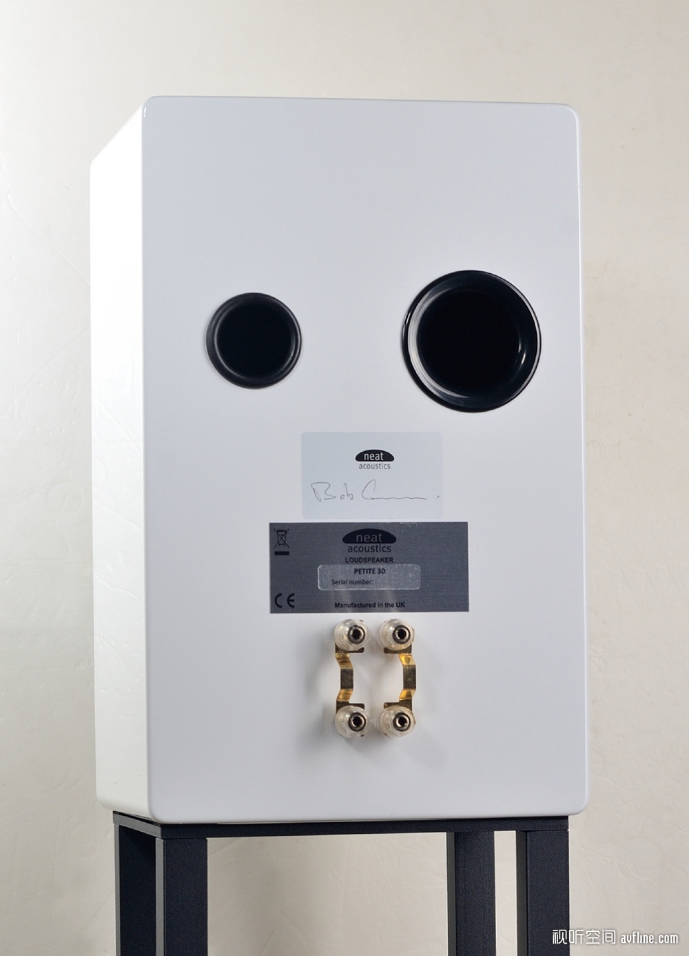 PETITE 30是一对相对小型的书架式音箱,为2分频2+1单元低音反射式设计,为什么是2+1,因为除了一只高音与一只低音之外,它箱体内部藏着另1只中低音单元,这是Neat acoustics的独门技术——同步等压(iso-baric)技术,Neat在箱体内部,前方的单元后方使用隔板加装额外的低音单元,两只低音单元同时会接收来自分频器的信号,其中间的箱室是密闭式的,后方的单元对前方单元有类似“Brake 刹车”之作用,低音的控制力与延伸都会提升。
