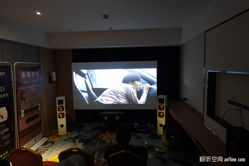 秦朝音响带了DA-1K+E6Pro影院系统,另外一个房间则演示了一套蓝牙有源音箱产品