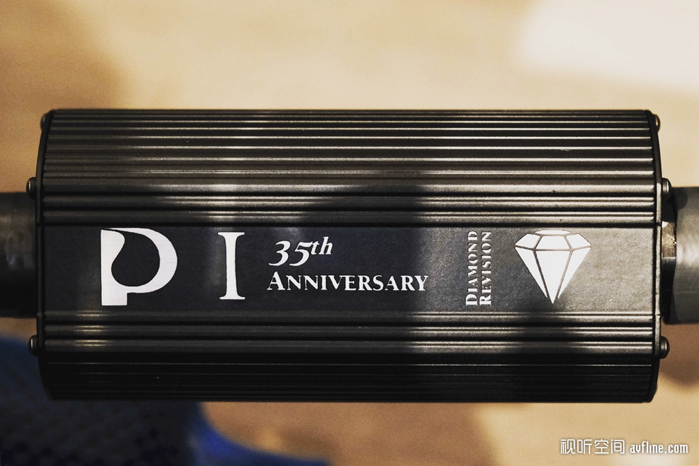 PAD为全新的35周年电源线配备了专利的无源滤波地盒。在黑色铝制外壳下是一个交流电调节电路(AC power conditioning circuitry)。该电路为无源电路,不会截断导体。通过使总的直流电阻率最小化来保持电源线的电流容量,使内部产生的热噪声的可能性最小化,并保持整体动态。该电路具有定制的磁控制和5级无源滤波电路,能够极为有效地降低、阻止EMI/RFI对于导体的干扰。从远低于200KHz到超过1GHz都是EMI/RFI的干扰范围。磁控制电路采用自定义配置的铁磁材料,通过动态改变高频阻抗,提供共模噪声抑制。因此,根据频率和噪音类型,当少量热量反射回源时,则导致高频噪音被吸收和散发。设计了5级无源滤波电路,以实现对高频噪声的宽带宽衰减。在高频时,滤波器的电抗在不同的频率点接近零,通过降低整体高频交流阻抗,从而分流任何高频噪声的存在。