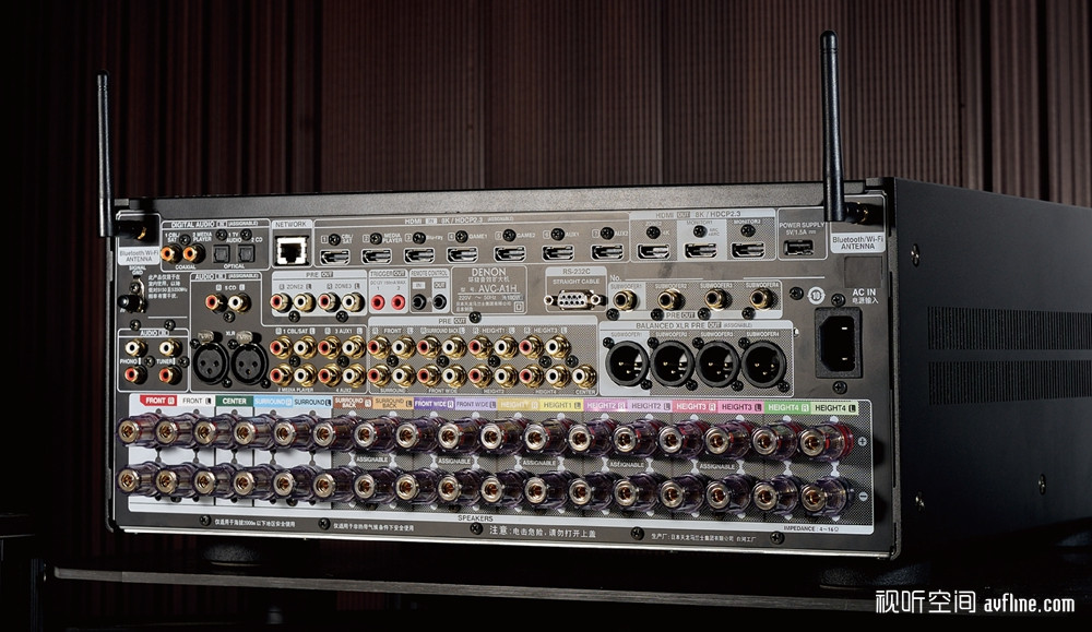 ▲ 说到大重量,不得不提接近20年前Denon推出的AVR-5805。这台百磅巨兽高28cm,重44kg,其变压器部分过于庞大,Denon不得不在箱体底部设计第五只脚垫以支撑其重量。虽然AVC-A1H的变压器还要更大更重,不过Denon工程师表示随着技术积累,AVC-A1H的电路和电源设计经过优化,其体积和份量比当年要小许多,不再需要第五只脚的设计。> 灵活应用的多接口