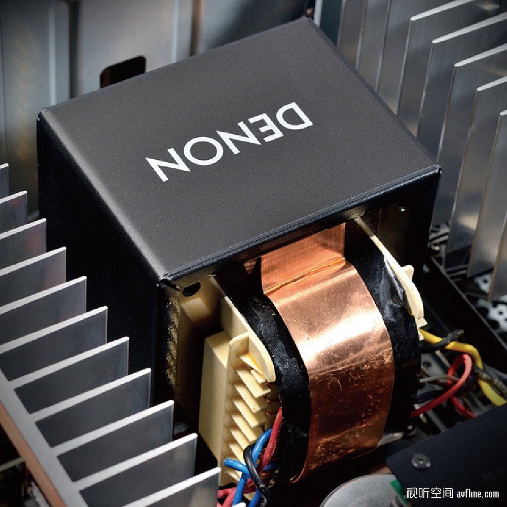 一台机器力气是有限的,我们使用的声道越多,每声道的功率就会变低,而AVC-A1H功率输出多达15声道,这对电源要求非常大。Denon设计巨大的变压器就是为了保证AVC-A1H强大的电源供应在多声道工作环境下仍然能够提供足够的功率。AVC-A1H的功率输出数据为190W(6Ω,1kHz,0.7%,2声道驱动),而Denon工程师表示在驱动9个声道的情况下,AVC-A1H能保持高达70%的功率输出!这是十分惊人的。