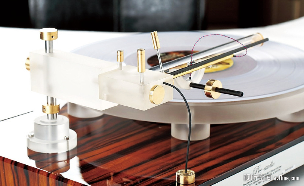 它的诀窍是在主唱臂旁边增加一个巧妙而简单的“辅助臂”,使唱头不断地转动而始终与唱片沟槽保持90度的正切角度。发烧友们发誓:Zero-100播放唱片,无论音乐是否复杂,其声音的清晰度和通透感都是普通支点臂唱机所无法比拟的。它的设计是如此出色和精确,“辅助臂”几乎没有增加唱臂的有效质量,也没有增加支点的摩擦力。