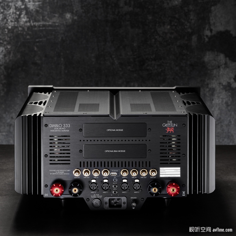 贵为一代经典 “大菠萝” 后继机,厂方在开发Diablo 333时,早已预留两组安装升级模块的空间,以便切合不同用户的要求。第一款属于黑胶同好必为所动,内建RIAA均衡曲线的Phono Stage 3唱放模块,从那唯一一对平衡XLR输入插座,足以反映出整个放大线路将会坚守双单声道纯A类零回授设计。负责讯号放大的零件,清一色选用预先经过配对,针对高保真回放而设的低噪音晶体管。如欲微调增益,用家只需透过面板上的显示屏幕,便可进入设定菜单随意修改,然MC负载数值则交由机背的微型开关进行切换,使用上确实较前作方便得多。