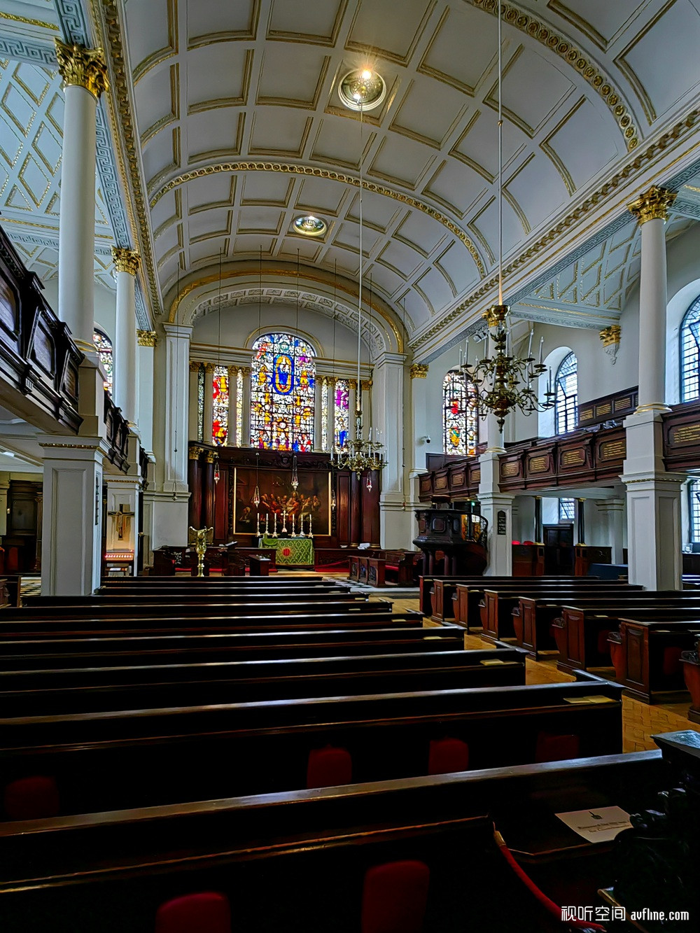出了纪念馆向东,不远就看到汉诺威广场Hanover Square 的圣乔治教堂St George’s Church。这是亨德尔的教堂。几十年来他曾在这里参加教堂的礼拜仪式,而且参与了教堂管风琴手的审定等活动。不清楚他是否在这里试奏他的那些管风琴作品(亨德尔曾经是位杰出的管风琴手)。该教堂于1724年建成,位于伦敦中心的富人区Mayfair。教堂内陈列着1724年至1833年每一位教堂执事的名字。教堂的第一个管风琴是1725年落成,有3排键盘,1514根管。自1761年起经过了数次重建、改装。现在的管风琴是2012年新建的,而管风琴的外框是1894年所建。该教堂现在每天都有宗教仪式,也有经常性的音乐演出活动。