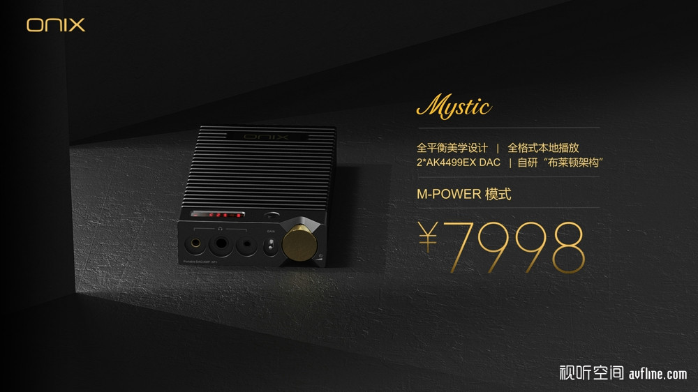 ONIX在发布会上还用整页的篇幅介绍了Mystic独特的M-POWER模式。打开机身背部的M-POWER开关并为设备接入外置电源,可以让机器化身为高水准台式耳放,在保证音色温润包容的基础上大幅度提升输出功率,带来全新的聆听体验。