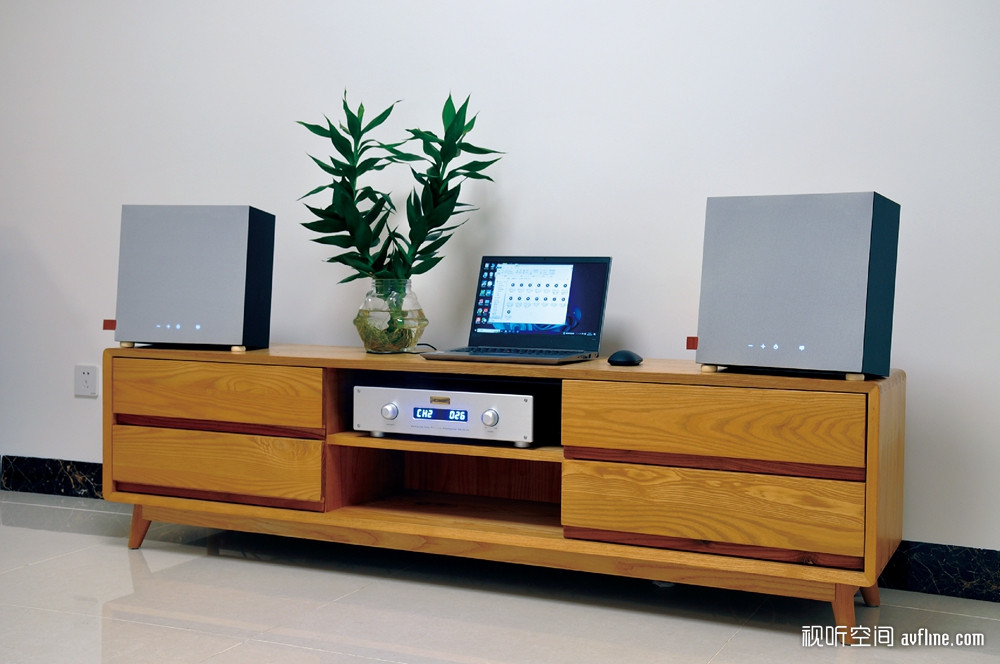 收到G&W TW-Z5.0A时,在[声色鉴赏 AV_Analysis] 2号试音室正对1对morel Högtalare以色列摩雷赫格塔雷无线蓝牙低音反射书架式有源扬声器进行试听。在这款书架式有源扬声器的前面板上,不但安装了2个直径1.5″丝膜凸球顶高音单元和1个直径6″中低音单元,而且设有1个低音倒相孔;箱体内安装了1部总输出功率为80W的放大器,用来推动3个单元。对G&W TW-Z5.0A进行试听,就从它与这对书架式有源扬声器搭配开始。