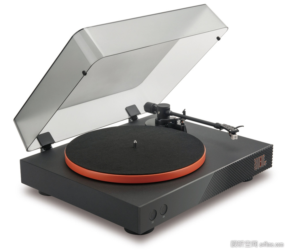 对于家中环境不是太宽敞摆下大型的音箱,又或者有黑胶收藏的音乐爱好者该如何选择?ARCAM和JBL也提供了“音乐聆听套装唱机版”——JBL 4309音箱、ARCAM A5功放、JBL SPINNER BT黑胶唱机的搭配供大家选购。我们先来看看JBL SPINNER BT黑胶唱机,外观充满年轻又时尚的气息,以MDF制成的黑色底座,再配上压铸成形的铝合金转盘,让唱盘工作时的稳定性大大提高。转盘由皮带驱动,能够隔绝电机工作时的震动,转速提供33和45转可供选择,满足市面上各种新旧唱片的播放。唱头选用了Audio-Technica的MM唱头,声音有保证。JBL SPINNER BT内置了唱头放大功能,同时还加入了蓝牙aptX HD传输功能,方便接驳各种音箱和后端设备。