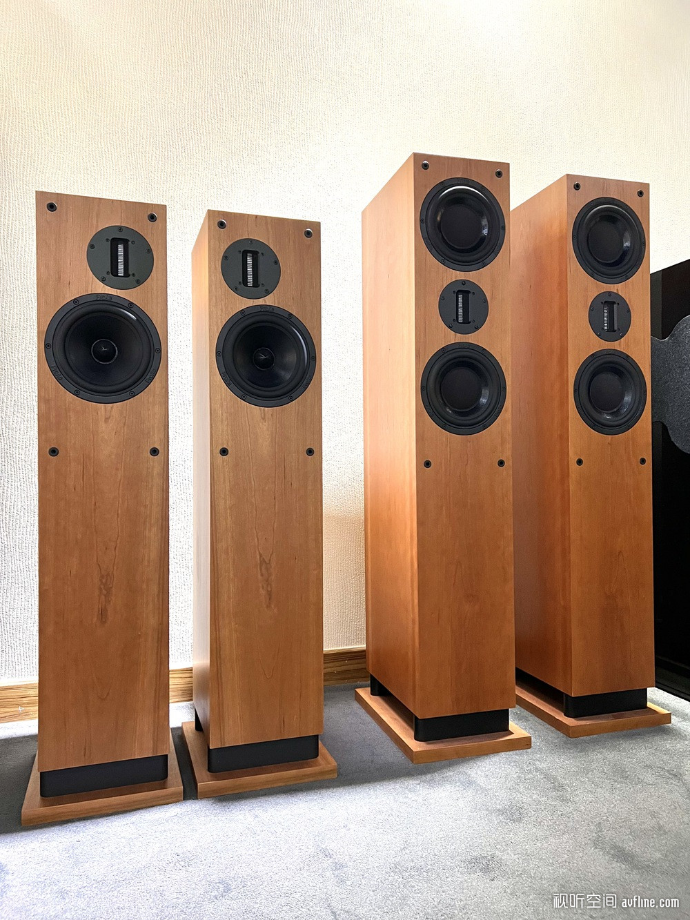 D48贵为Response系列的一哥,身高与深度分别达1,200mm及340mm水平,而面板宽度只有212mm,意味着它同样具备极尽优秀的声场还原能力。D48采用MTM哑铃式单元布局, 2只单元振膜表面设有特殊涂层及校声防尘罩的崭新研发165mm直径中/低音之间,分别是气冷式25mm丝质纤维半球型制品(D48D),以及振膜重量跟人类发丝相若,轻易直达30kHz领域60mmx10mm丝带单元(D48S)。