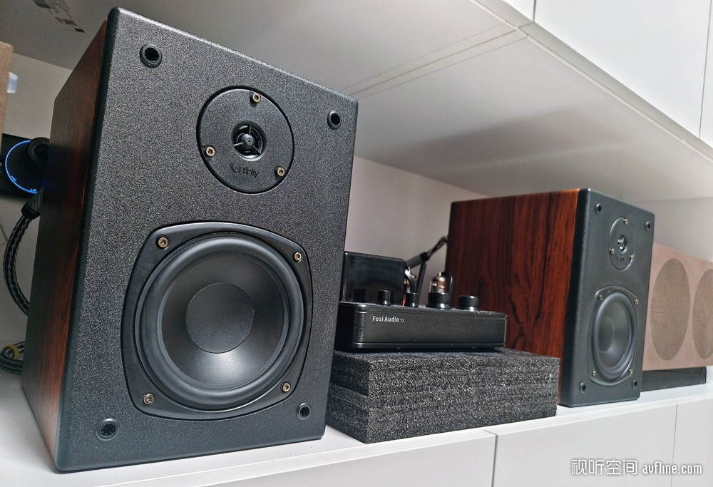 具体技术参数,音箱整体后倒相,二分频。高音单元使用Mylar“麦拉”膜片,铝合金振膜搭配Mylar悬边,该技术源自天朗旗舰皇家帝国Kingdom Royal音箱,能够发出更平顺的高频段。低音单元采用5寸“锅型”复合纸盘橡皮边,有较佳顺性,弹波的配合也到位,声音特色是比较“放松”,也是最近两年最流行的HiFi音箱所追求的声音感觉。