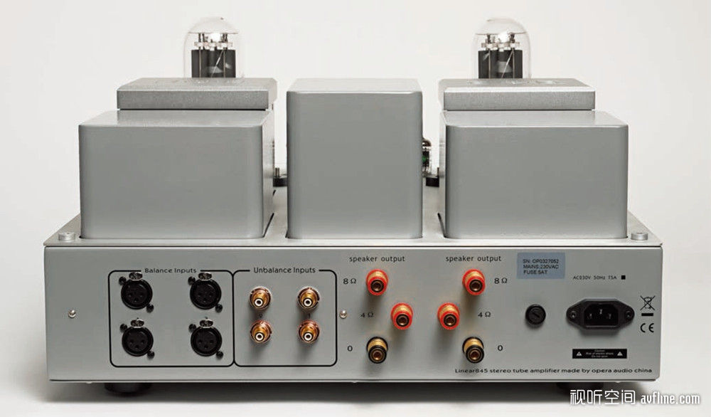 动力:845电子管以其动力强劲而闻名,其功率基本上是传奇300B的翻版。即使不是很大的声压,也能表现出音乐强劲的动态和惊人的爆发力,每个声道28W类似于一台功率强大的晶体管功放,这些特点给我们留下了非常深刻的印象,同时它又表现出精确而细致的解析力,细腻的线条和有力的动态,在强有力的管弦乐合奏中顺滑而有层次地展现出来,没有任何刺耳感,细腻解析又充满力量。
