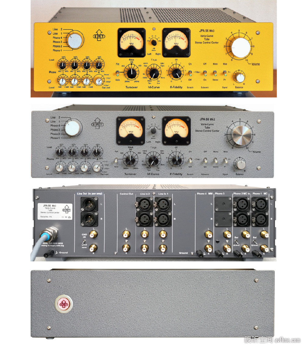 称得上是专业用的EMT JPA 66唱放连前级在这方面就照顾周到,尤其是第三代,即现行的Mk3版更是周详。它面板中间的三个黑色旋钮(第一和二代只有两个)就是供用户调节这条曲线,使每张唱片都能获得恰当的还原。
