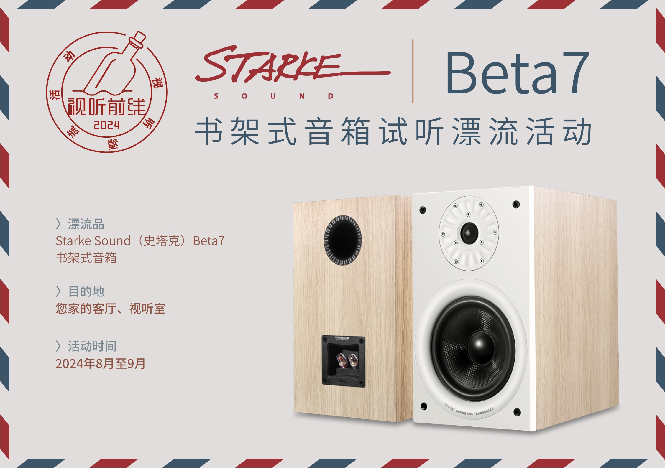 本次活动,我们联合深圳优声美影有限公司举办新一期的“视听漂流活动”,漂流品为获得“视听前线2023-2024主笔推荐优秀视听产品”的Starke Sound(史塔克)Beta7书架式音箱。