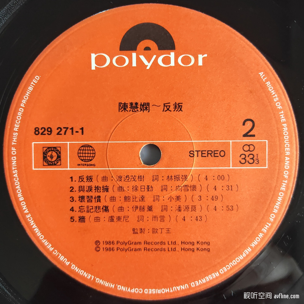 香港流行黑胶唱片的价值与版本鉴别(61)陈慧娴《反叛》