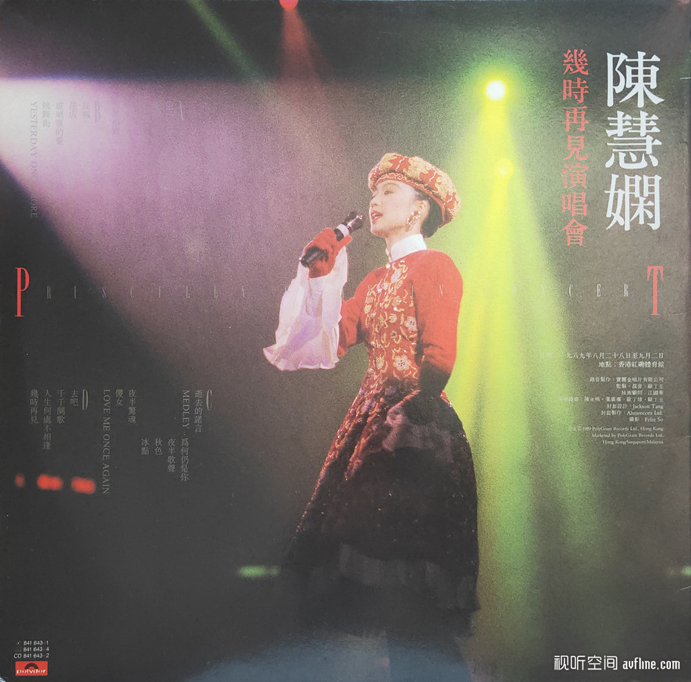 至于声音,笔者此前已有提到,陈慧娴的唱片,基本是其当时的男朋友欧丁玉参与全程的监制及录音,除“几时再见演唱会”外,陈慧娴还参与了另外两张唱片的监制,一方面监制是自己的男朋友,另一方面自身也参与自己唱片的监制,压制也是宝丽金唱片公司自家的品牌,一位是当时的当红歌手,一位是公司中高层管理人员加金牌监制,几个方面的保证,加上“词、曲”的精良,这样操作下来,“词、曲、录、唱、制”均占尽了当时的优质资源,声音自然有了最大的保证。加上,欧丁玉已是珠玉在前,唱片录音质量有目共睹,监制水平在香港也是名列前茅,陈慧娴的唱技自然也不须笔者多言,有人甚至形容“几时再见演唱会”是“ 一场LIVE超越录音棚的演唱会,经典无法逾越”,有人甚至认为“陈慧娴的声音真的是被上帝亲吻过,低音婉转动听,高音高亢抑扬顿挫,甜而不腻,亮而不刺耳”。在笔者看来,这是一场完美的演唱会,也是一张接近完美的现场录音黑胶唱片。