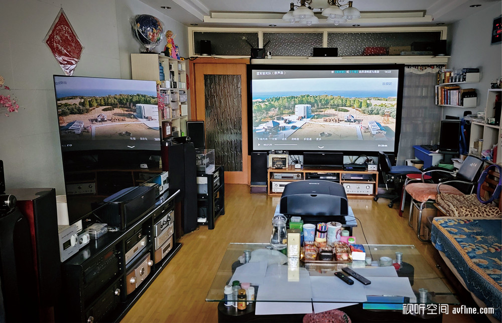 遗憾之处自然有,一是受条件限制观影效果有所妥协,例如投影机家人不接受吊装,在室内机柜摆放会占些空间;客厅墙体、天花不能像专门的小影院那样涂成暗色;索尼VW578投影机有16:9和2.35:1两种投影比例设置,但由于屏幕处空间所限无法增加后一种,减弱了看2.35:1动作大片时的震撼效果(因为在16:9荧幕上观看2.35:1电影画面反而变小了)。二是环绕声技术一直在进化,器材购买不久就遭淘汰换机(例如早期的杜比定向逻辑、CS-5.1解码器等,后来的杜比数字和DTS也多次进化)。近年的“沉浸式”要求有上方的天空声道(天花吸顶音箱),严格说不仅需要再升级功放,而且要在头顶上方增加2到4只音箱,由于难度较大未实施。三是这几十年间花了不少冤枉钱,例如前述购买千余张DVD碟多数没看就废掉,购器材有一部分是较低价位的重复,由于升级换代快导致投资频繁,也有过购买劣质器材白扔钱的经历。这些年自己的工资收入大多花在影音发烧上(或许应了那句俗语“玩音响穷三代”)。