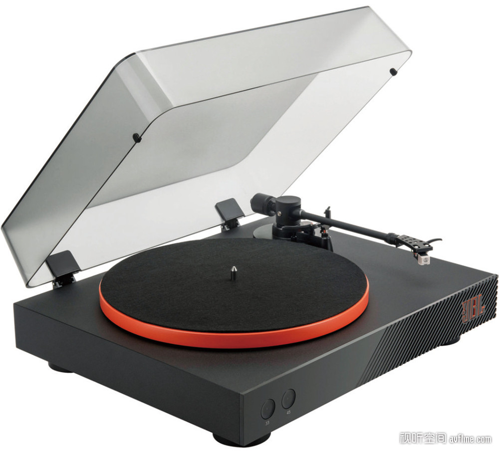 如何让黑胶唱机实现无线连接?JBL SPINNER BT给出了完美答案——其型号中的“BT”即代表蓝牙技术。JBL SPINNER BT是一款兼具设计时尚和便捷操作的黑胶唱机。其转盘部分为压铸成形的铝合金材质,同时采用橙色涂装(另有黑金版本),与黑色机身形成鲜明对比,呈现出独特的时尚感。而在性能上,它支持33 1/3和45rpm两种转速,并内置唱头放大器,即使外接只具备Line In高电平输入的功放也能使用。