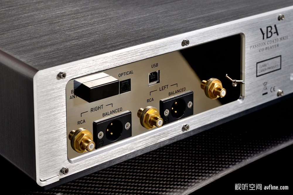 YBA Passion CD430 MKII CD播放器技术参数■ CD系统:飞利浦CDM4 ■ 信噪比(RCA/XLR):114dB ■ 总谐波失真:0.0015% (20 Hz – 20 khz) ■ 尺寸:430×388×118 mm ■ 重量:12.3 kgPassion CD430 MKII支持CD、CD-R和CD-RW等多种碟片格式的播放,还具备USB-DAC功能,同轴和光纤数字输出;CD430 MKII支持24bit/192kHz PCM和DSD64解码,以及蓝牙5.0输入,支持LDAC和aptX HD蓝牙编码。CD430 MKII使用了两块Analog Devices AD1955解码芯片,飞利浦CD-PRO CDM4转盘系统,配备YBA独家专利的Blue Diode(蓝色二极管)光学系统。CDM4的大名烧友不会陌生,多年来都是数码信号品质的保证。机器还设有蓝色LED灯照射CD片,相信是对读取过程减少光信号的杂讯有关,这些细心对校声都会有作用。