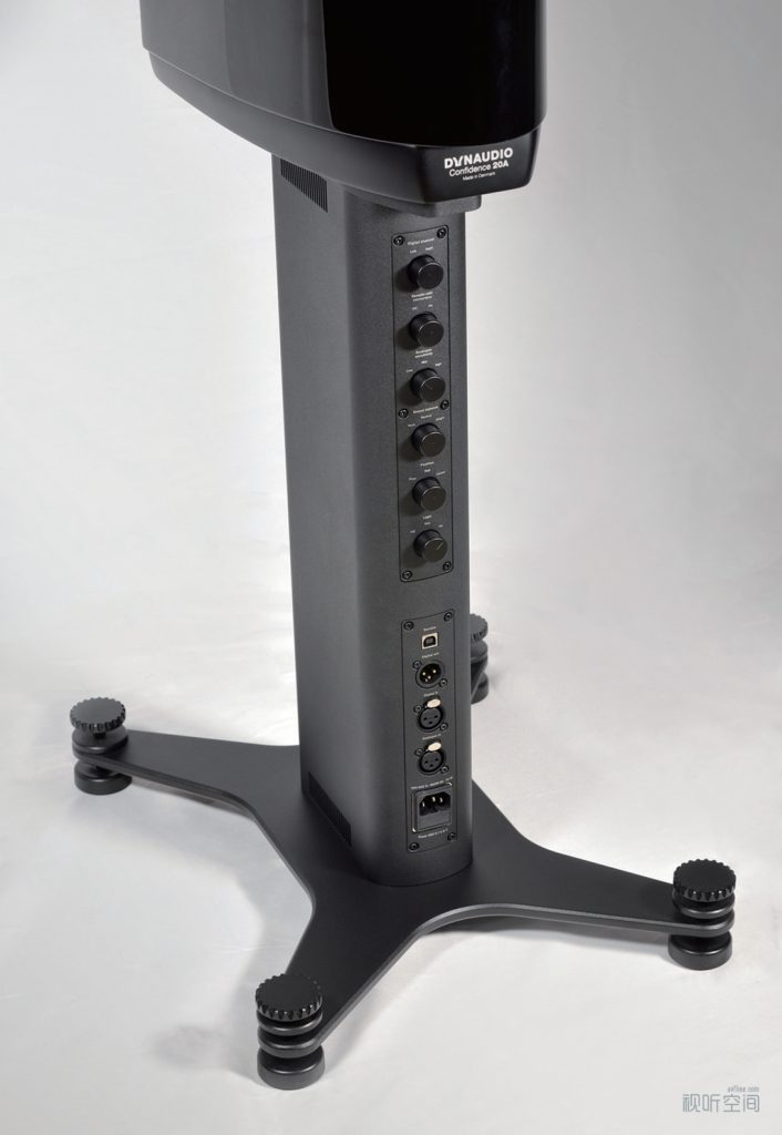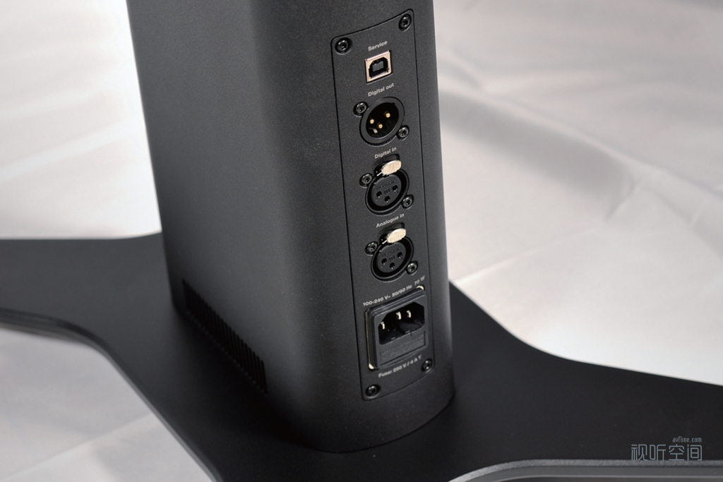 丹拿还在信心20A的脚架上设置了非常丰富的输入输出接口,包括有1组XLR模拟输入、1组AES数码输入以及1组AES数码输出