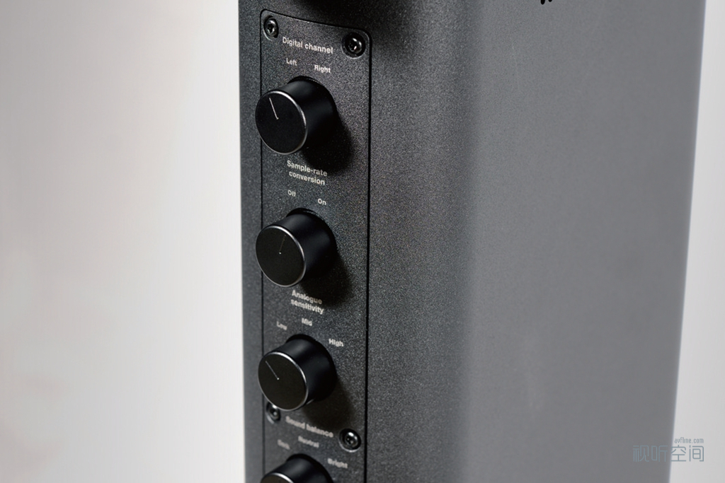 丹拿还在信心20A的脚架上设置了非常丰富的输入/输出接口,包括有1组XLR模拟输入、1组AES数码输入以及1组AES数码输出,使用AES输入时,可通过数码输出串联左右声道,减少模拟输入的A/D转换环节,进一步降低信号损耗。与此同时,脚架上提供了模拟输入灵敏度、数码声道左右选择、摆放位置的调整(背靠墙/靠墙角/自由场)、声音音色微调等功能,让丹拿信心20A能够轻松融入不同的家居环境当中,并满足用户不同个性化的声音需求。