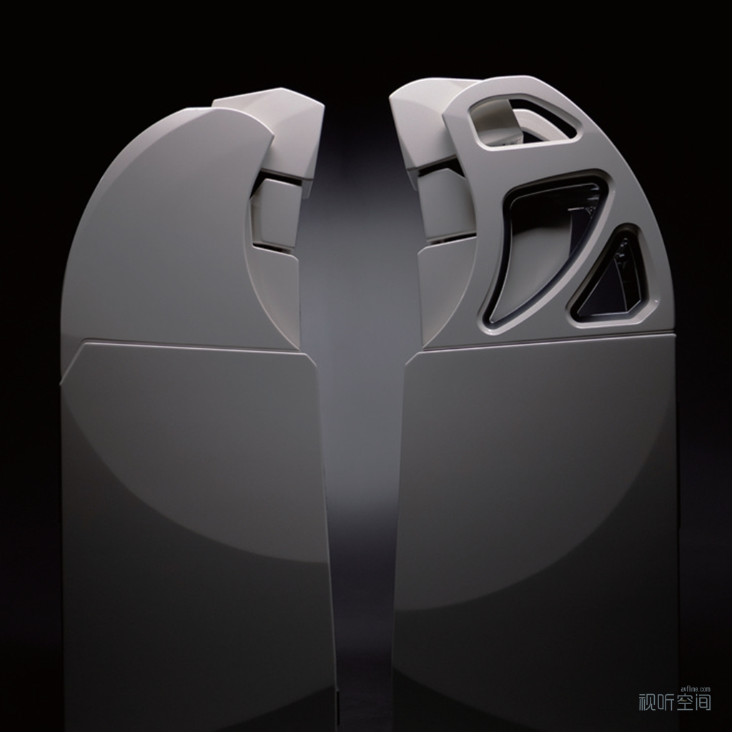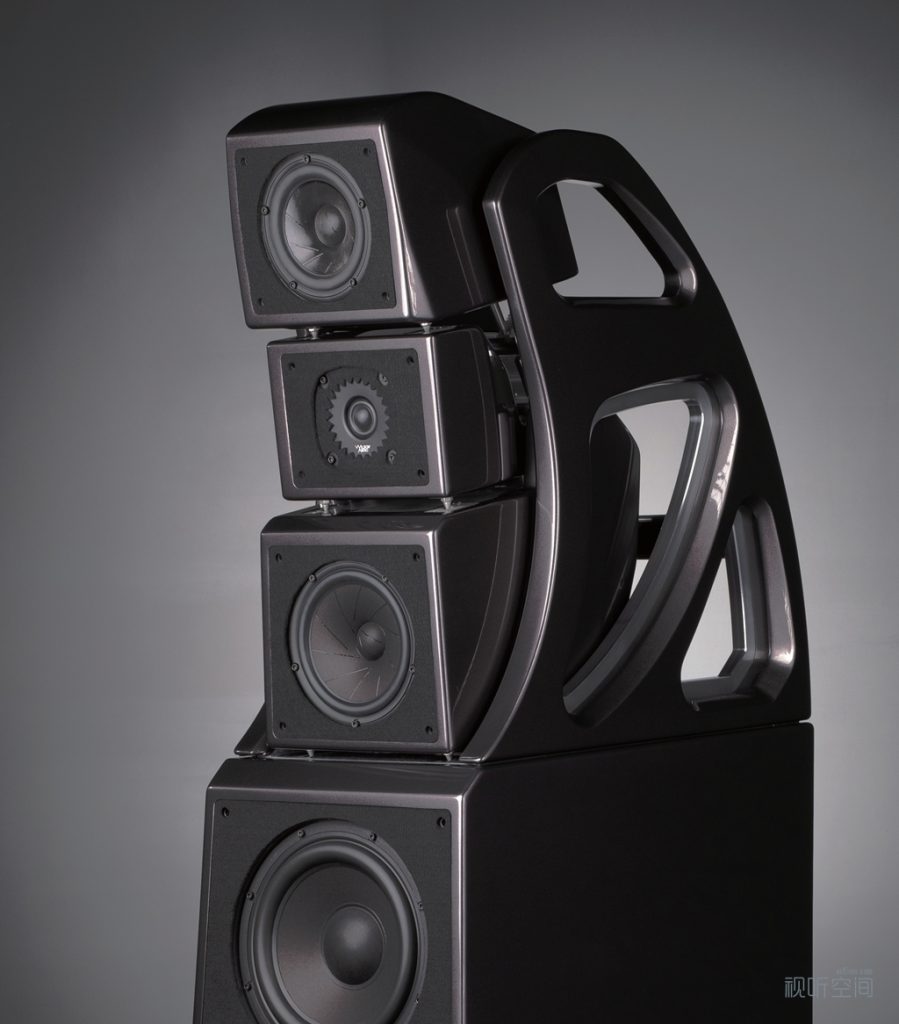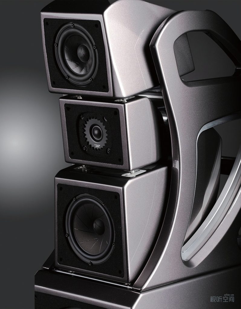 音箱箱体用多种材料制作,不同的部位用不同的材料,这样就能做出超低谐振的箱子。这些材料有“X材料”、“S材料”和“V材料”。X材料是一种高密度复合材料,能快速消散能量,用来做每个音箱的外壳,能减少共振对声音的影响。S材料是专门为中频设计的阻尼材料,用于制作中音的前障板,能获得清晰、开放的中音,让中音音色更准确。V材料则用在低音箱体顶板隔离低音的影响,以及用在关键连接部位,达到高效的振动隔离的目的。