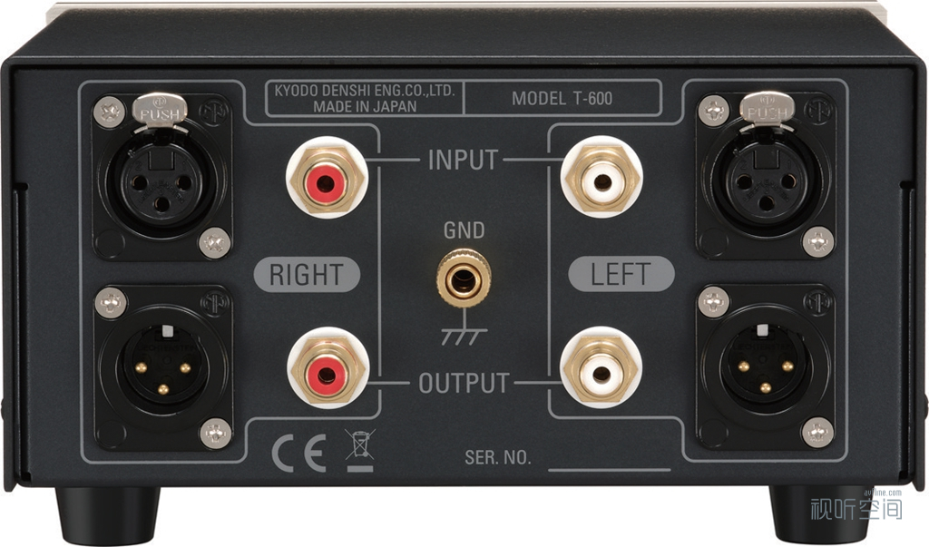 为了满足不同用家的连接需求,T-600同时配备了XLR和RCA输入、输出端子。其中,XLR接口采用Neutrik品牌连接器,RCA接口则经过镀金处理,有效减少了信号损失和干扰。T-600 MC升压牛不同于此前的T-550,T-550只能使用单独的XLR或RCA输入,而输出方面则仅有RCA提供。而T-600则可通过前面板选择XLR或RCA输入,而输出方面也提供了XLR和RCA可供选择,对于有着“三头六臂”甚至是多台唱放的玩家来说实属方便。