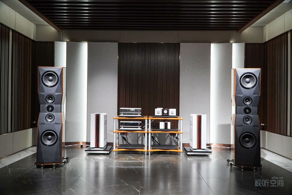 活动现场采用了Burmester柏林之声069CD机、Octave八度Jubilee系列前级和单声道后级推动Peak的Dragon Legacy