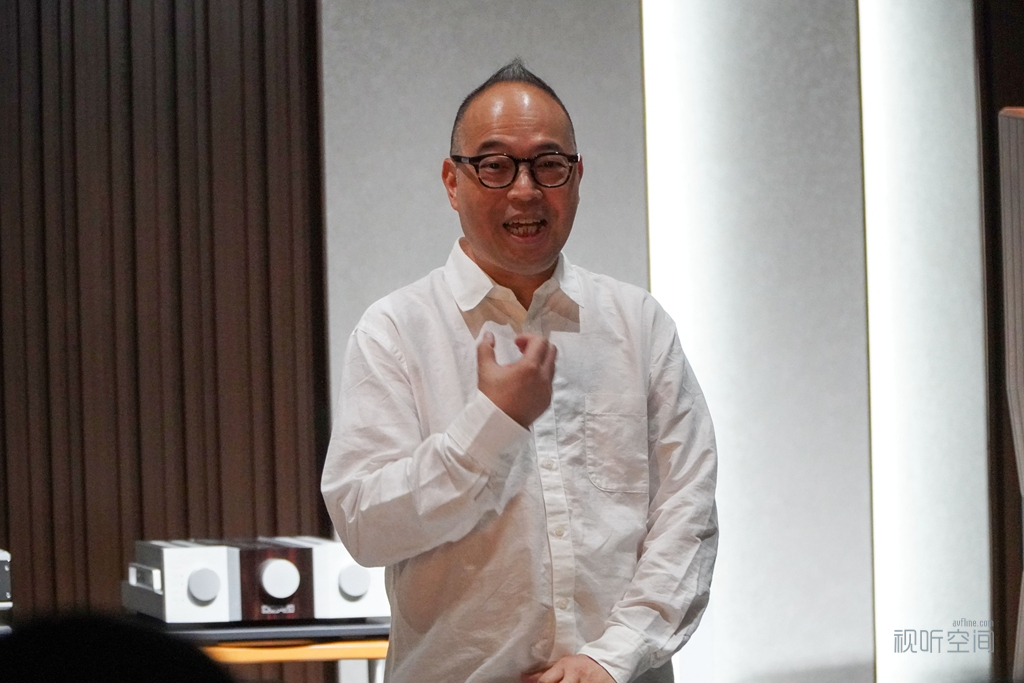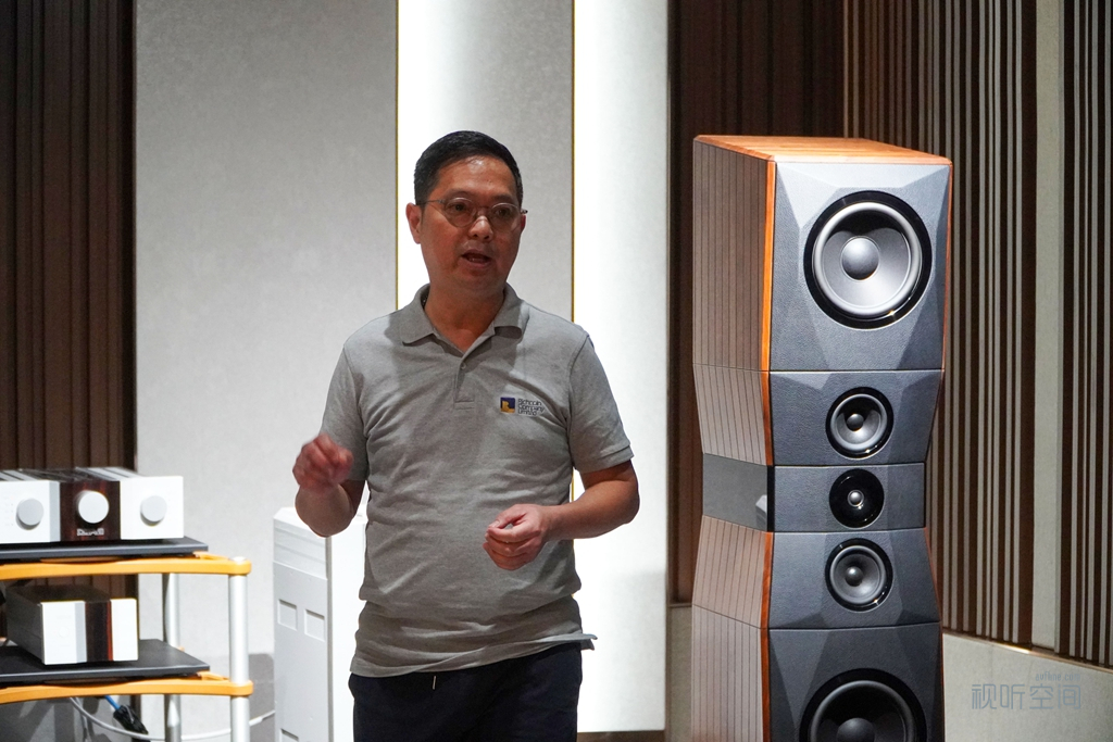 活动现场演示的是Dragon Legacy 巨龙旗舰落地音箱,Mike Picanza先生特别以此作介绍:“3路5单元设计的Dragon Legacy,遵循严格的点声源设计,以MTM形式(哑铃式)方式排布,中间是1只26mm的丝质软球顶高音,上下配置双150mm中音与280mm低音单元。这些单元都是厂方自行设计并委托高品质单元厂家进行生产。而分频器部分也是采用最好的元器件进行组装。比如分频器采用的丹麦Duelund杜兰电阻就要超过50欧元,相当于大多数音箱整个分频器的投入。我们的目标是推出声音逼真、能够让人伸手即可触摸到音乐、让人投入于音乐中的音箱。”