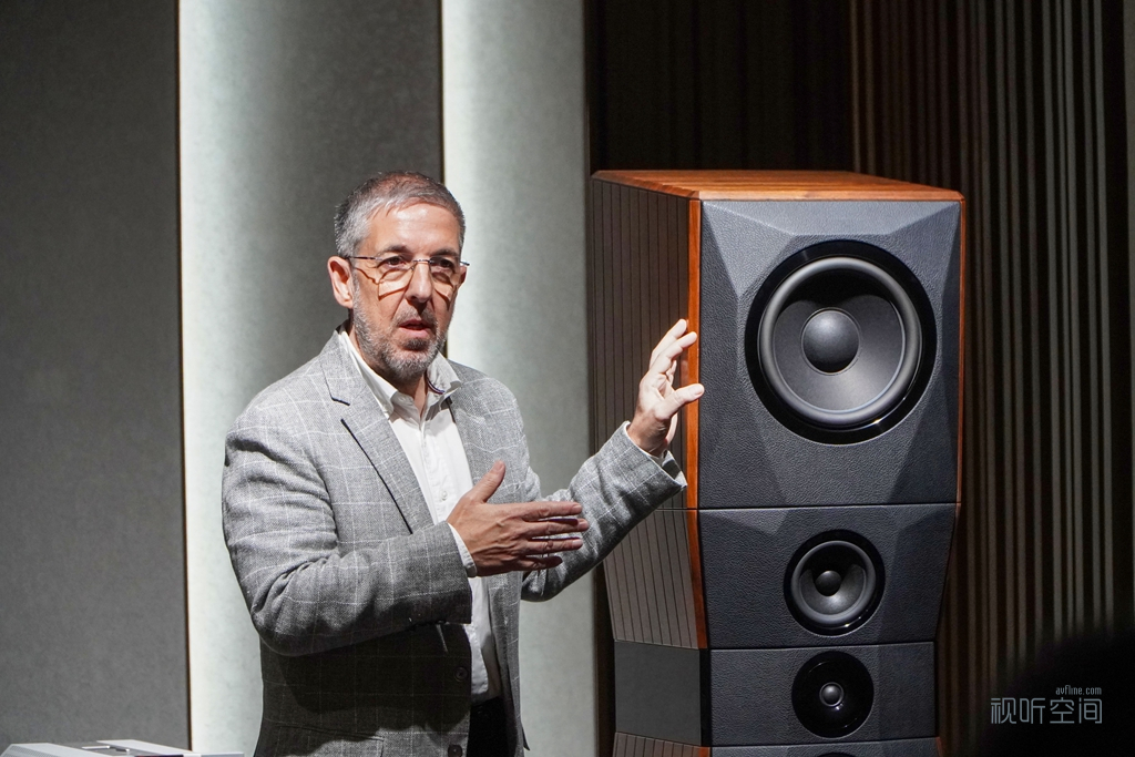 此外,Mike Picanza先生还介绍了接线柱和脚钉。接线柱采用了Argento Audio的制品,虽然并没有金光闪闪的漂亮外观,但是这是厂方经过严格筛选和试听对比得出的结果。而音箱的脚钉,虽然看似简单,但是脚钉由多个组件构成,金属件由纯钢CNC而成,内藏有高刚性陶瓷珠,有很小的接触点,能抵御震动、消除谐振。