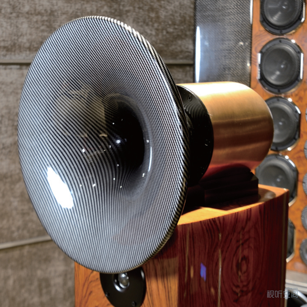 配色方面,黑色配红木饰面是经典搭配,哑光的金属黑和亮面木皮漆加大了材质的差异性,外观更显夺目。号角除了标配的橙色外,还可选碳纤纹路饰面。