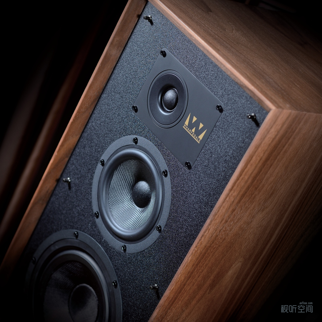 SUPER LINTON 采用三音路设计。在高音方面,SUPER LINTON配备了1英寸轻质编织材软球顶高音单元,该单元表面涂有特殊阻尼材料,并由高性能铁氧体磁铁驱动,高音单元背后设有独立后腔室,内藏吸音材料,用于吸收高音单元背波,避免背波反射影响音像定位。中音部分采用Kevlar防弹材料制成的135mm口径单元,该单元被安装在独立的圆柱形腔室中,内装有多层长毛纤维,以消除来自振膜背部的声波反射,从而能够自然、准确地描绘乐器和人声。至于SUPER LINTON的8英寸低音单元,其振膜同样采用Kevlar防弹材料,并配备大磁钢设计,以获得低失真驱动系统。