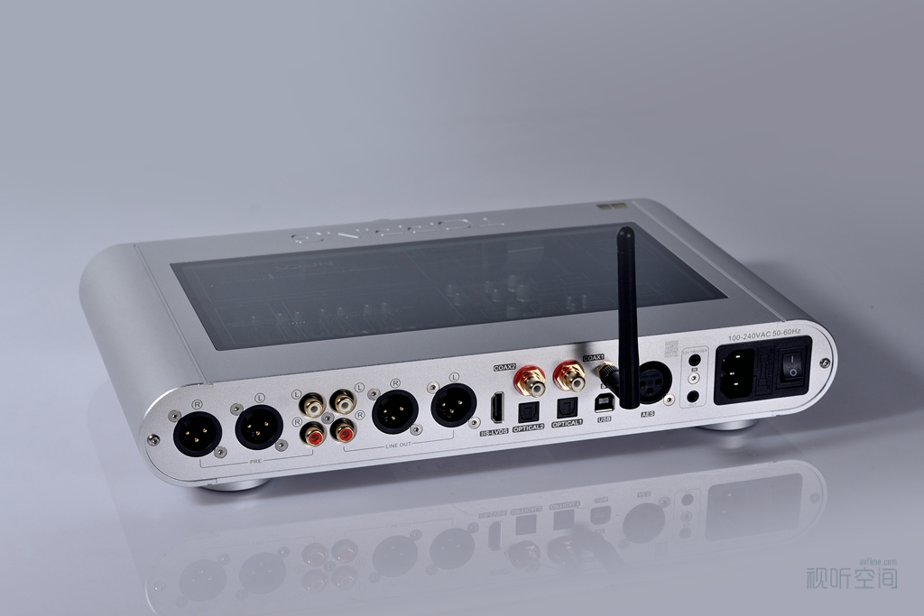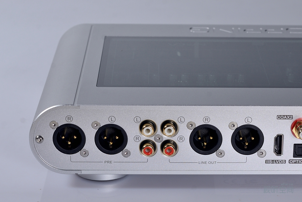 DX9 Discrete保持了DX9那样直板加圆角的设计,我试用的是银色的机器,铝合金机身表面经过细致喷砂处理,表面触感细腻,反光柔和,有高档感。音量旋钮的阻尼感处理得恰到好处,左右两块彩色显示屏显示菜单、播放信息、FFT、VU计等。顶部全景天窗设计,用户可通过面板直观地看到内部精密的电路结构,比如PSRM模块和分立耳放,体现了拓品对自身技术实力的自信。