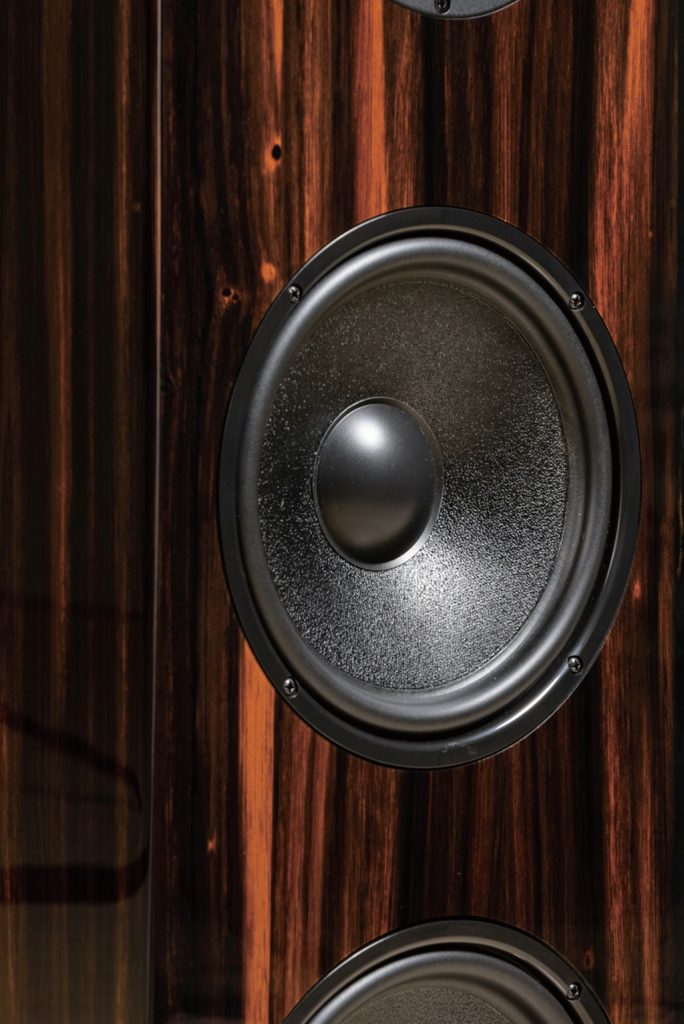 D568所配备的中音、中低音和超低音单元同样不容小觑。5.25英寸的中音单元,音盆采用多种不同成分的铝合金精心制成,既具备强大的刚性,又拥有良好的阻尼特性;该单元采用铝合金盆架,刚性出色且散热迅速;悬边则选用特殊的纯天然植物橡胶制作,平衡性与弹性极佳。2个8英寸中低音单元和2个8英寸超低音单元,音盆由多种纤维混合而成,同样采用铸铝盆架和纯天然植物橡胶悬边,旨在为听者还原震撼人心的低频效果。