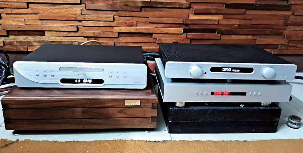 沈先生当下就用ATOLL DR200 Signature换下Densen B-410 CD机。从直觉上来说两者读取的都是同样的数据,第一反应是彼此重播效果应该差别不大。但实际出来的效果却是天翻地覆的:ATOLL DR200 Signature全面碾压Densen B-410,无论在细节、动态、线条感、冲击力、三维度等诸多方面均是如此,可以说ATOLL DR200 Signature一下子就将整个音乐空间“撑”了起来,音场会向各个方向膨胀、扩张;相比之下,Densen B-410的整体表现偏“软”,音色较为阴柔,解析力、透明度都稍带模糊,瞬变速度也不如ATOLL DR200 Signature般轻盈敏捷,而且音场较为内陷,不像ATOLL DR200 Signature有一种向四周扩张的暗劲。有这样显著的差别,我想应得益于纯转盘有更好的避震措施、更充沛的供电和加设了时基误差抑制电路,从而获得更精准、完整的数据读取吧。