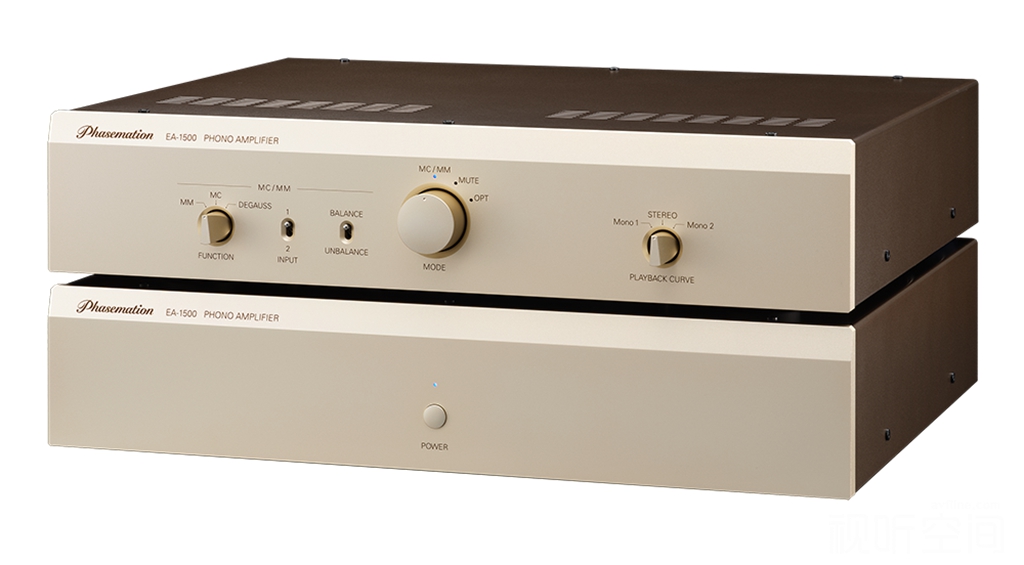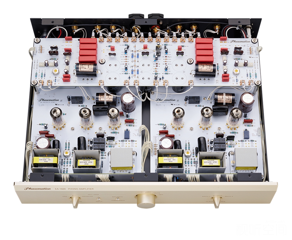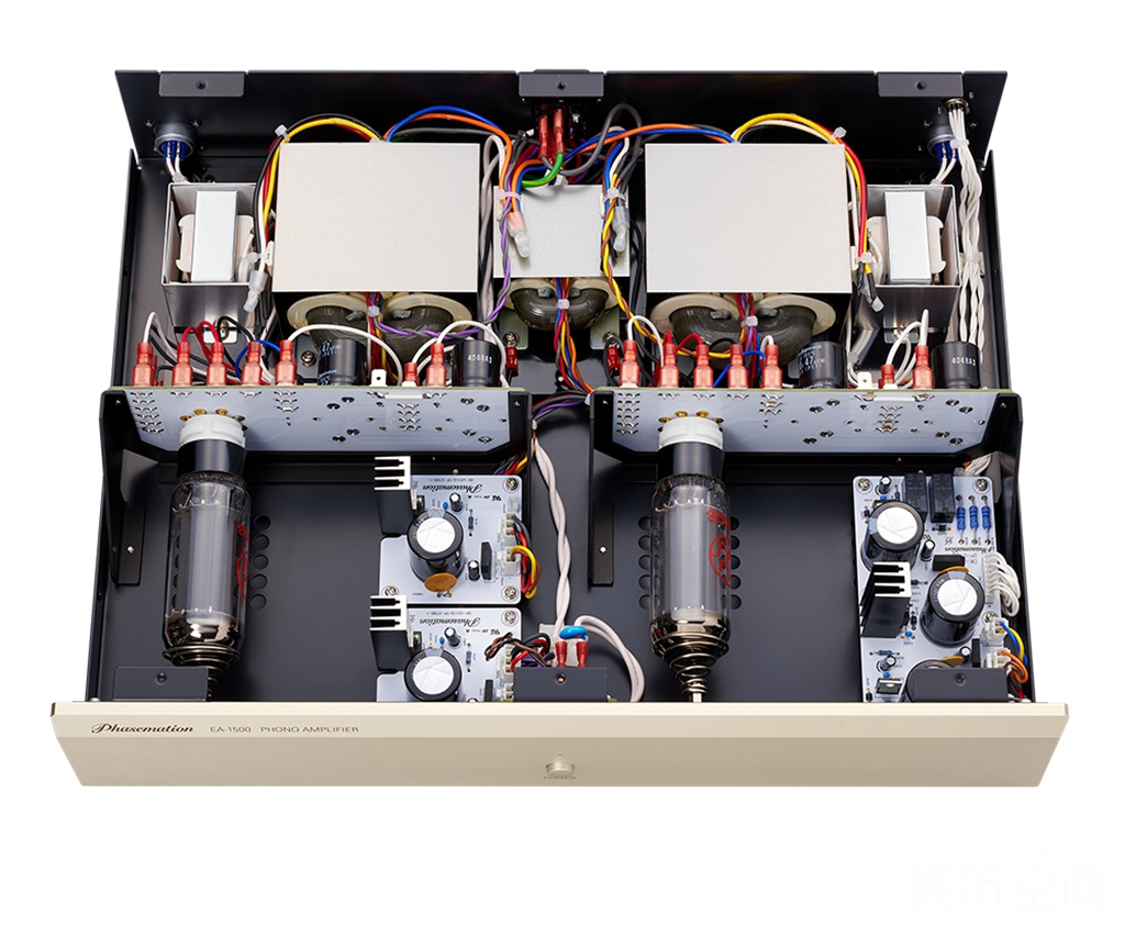 8、传承与创新功能并存:EA-1500保留了“协同”制作唱放的好声标准,左/右声道全独立运行,从供电、放大到输出均利用两个机壳,以双单声道Dual Mono电路布局和工作。此外,应众多发烧友要求,唱放仍保留了相当实用的“MC唱头消磁”功能,以及额外的Decca和 Columbia 两组单声道均衡曲线选择,满足不同用户的需求。Phasemation的这款EA-1500胆唱放,可谓集厂方多年制作唱放经验之大成,突破了唱头放大器的技术极限,使“协同”唱放的地位迈向新的里程碑。