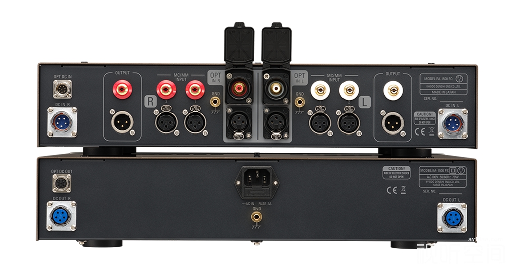 6、信号输入输出兼容性强:新款EA-1500支持单端及平衡信号的输入/输出,因此唱放配备 RCA及 XLR输入和输出接口,另外还附设一组RCA和一组XLR输入接口,专供光学唱头使用。为确保信号优质传送,所有选用的RCA插座均经过镀金处理,XLR则选用德国Neutrik的高级产品,最大程度降低微弱唱头信号传送过程中受到的干扰。此外,电路中还使用多个继电器进行操作切换缓冲,确保唱放的耐用度和信号连接符合高阶音响的严格要求。
