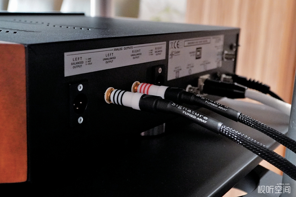 这次搭配Digidrive TL-3 CD转盘的解码器同样来自Lector力陀,是当前的旗舰解码器Digicode S-192。Digicode S-192的外观沿用了Digidrive TL-3 CD转盘的外观,前面板采用黑色有机玻璃设计,机身两侧以樱桃木包覆。前面板左侧提供了输入选择,右侧则是数码显示管用于展示当前的码率。后背方面,提供了同轴、光纤、BNC、AES/EBU和USB输入各一组,模拟输出提供了XLR和RCA输出各一组。此外还有时钟输入和BNC数码输出各一组,满足各种玩家的使用需求。