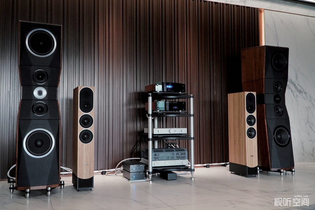 这次搭配试听的是OCTAVE德国八度HP300 SE前级和RE320后级,推动PMC Prophecy9 落地式音箱。在这里稍微和大家介绍一下这对音箱。全新的Prophecy系列是PMC于2025年推出的定位在Twenty5系列与Prodigy系列之间的产品线,凭借其时尚的外观、崭新的技术以及优秀的声音,一经推出便深受世界各地发烧友的追捧。Prophecy系列也作出多项革新,包括升级PMC自家经典的ATL™(Advanced Transmission Line)低频传输线技术,搭配LaminairX空气动力学传输线出口,通过优化气流路径减少湍流,提升低频效率与清晰度。新设计的LaminairX空气动力学传输线出口,与Prophecy音箱的厚重铝底座整合为一体式设计,进一步降低谐波失真。Prophecy系列目前推出了5款音箱,Prophecy9 落地式音箱属于当前系列的旗舰。