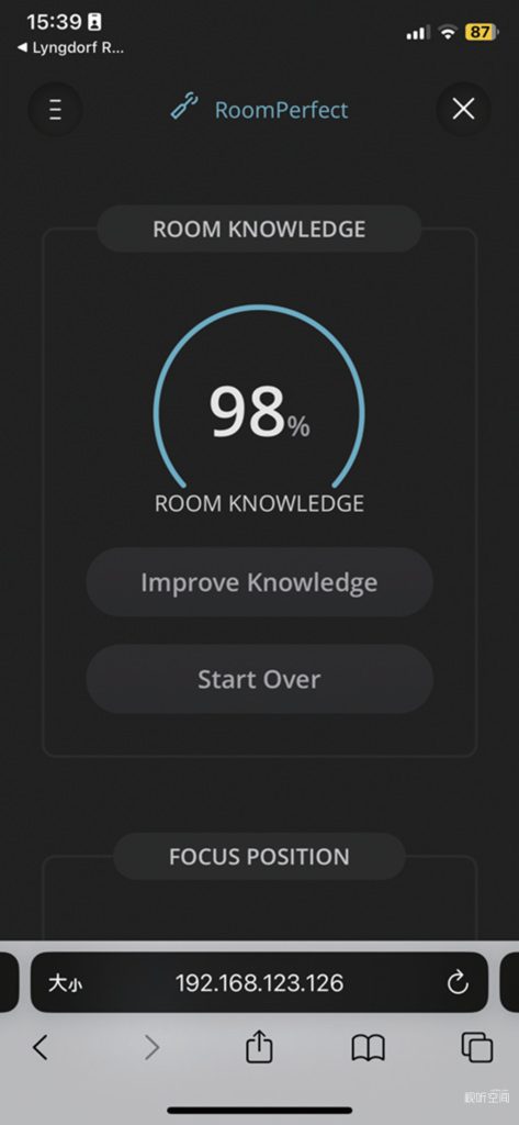 通过Lyngdorf TDAI – 2210的RoomPerfect™声学校正技术,试音室中的声学缺陷得到了有效补偿。无论是在试音室的哪个位置,都能感受到均衡一致的声音表现。在Focus(焦点)模式下,主听音座位处的声音定位更加精准,声音的细节和层次感得到了进一步的提升;而在Global(全局)模式下,整个试音室内的声音更加均匀,多个位置的听感都非常接近。