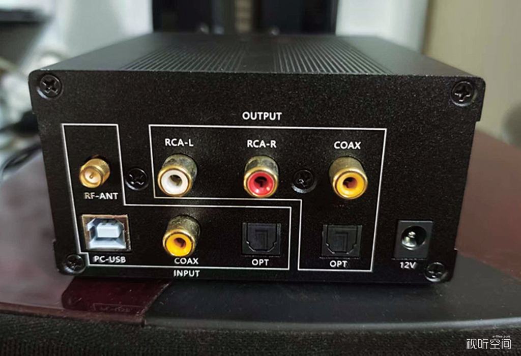 1、接口齐备,输入包括USB,可连接U盘、硬盘,可带动的硬盘最大2T,我认为足够用了(显示界面还有SD卡,但此机没有,说明厂家还有另外的机型);USB-B型接口,可连接PC直接解码播放电脑里的音乐;同轴、光纤输入,可连接其它各类数字音频播放设备;输出除双声道的RCA用于连接功放外,也有同轴、光纤输出,用于连接另外的解码处理设备;还有天线,是为蓝牙传输而用。