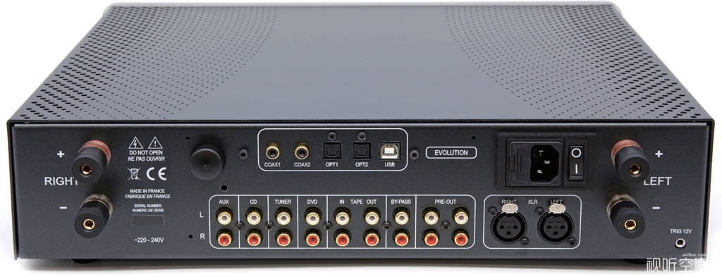 IN300 EVO的输入级使用有金属盒屏蔽的MKP Mundorf电容,并使用Absolue Creations发烧线材以获得更好的讯号传输效果。IN300 EVO使用3级推挽放大级,而较低级别的IN系列放大器只使用2级推挽。IN300 EVO这种做法有助于减少谐波失真、改善效率、增加功率输出以及更好的热管理。这些优点也使一台好的放大器变成一台卓越的放大器。我很欣赏有些公司使用优质元件来制造它们产品的做法,因为这就像音箱的分频器一样,元件的素质确实很重要。而某些否定这种做法的人只是他们从未亲耳听过,或是没研究过不同品质的元件是如何影响音质的。