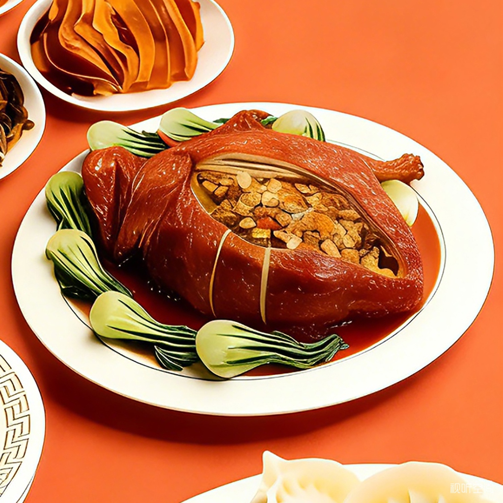 简介:八宝鸭是中国传统名菜,流行于苏州、上海及客家地区,属沪菜、苏菜和客家菜系。该菜起源于清代宫廷,乾隆三十年苏州织造进贡的“糯米八宝鸭”即为其前身,1930年代经上海城隍庙老饭店改良后广泛流传。传统做法以带骨鸭开背,填入糯米、火腿、冬笋、干贝等八种配料,封碗蒸制后浇淋虾仁青豆卤汁。成品鲜香浓郁,内里配料经鸭肉腔体润泽后各色鲜明,而且形态丰满,菜形美观,是江浙上海一带年夜饭的大菜之一。